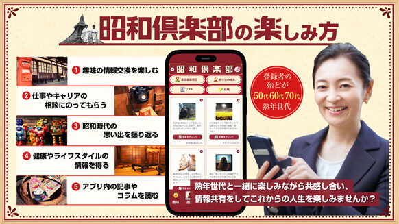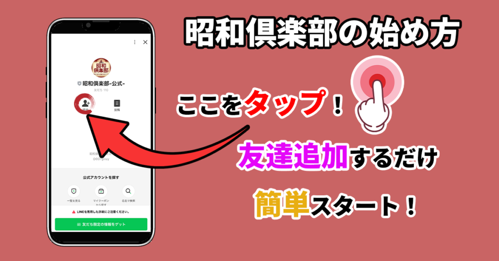 昭和倶楽部は中高年・熟年・シニア世代専用のマッチングサービスです。公式LINEを友だち追加するだけで登録できるのでアプリをインストールする必要はありません。